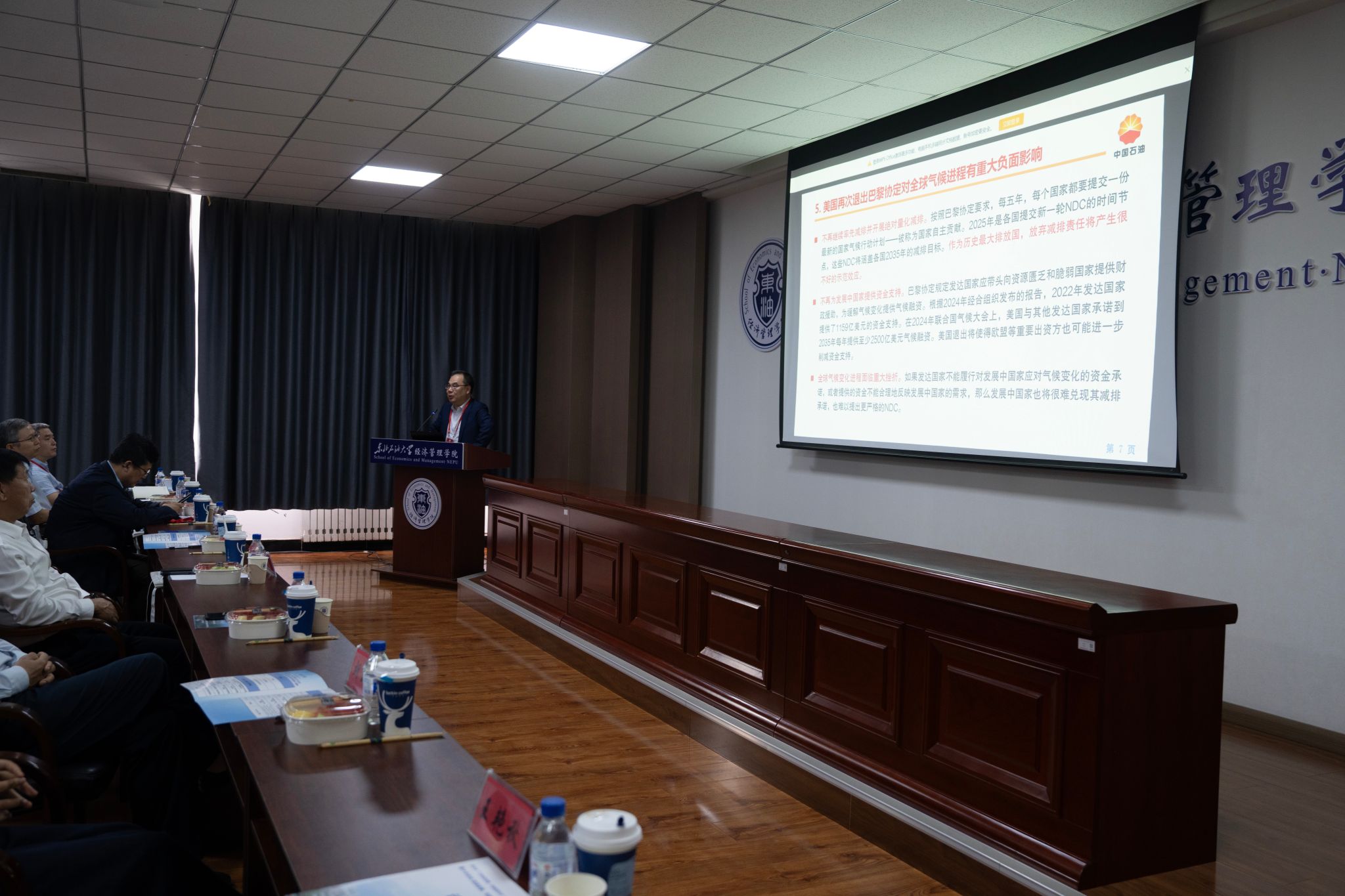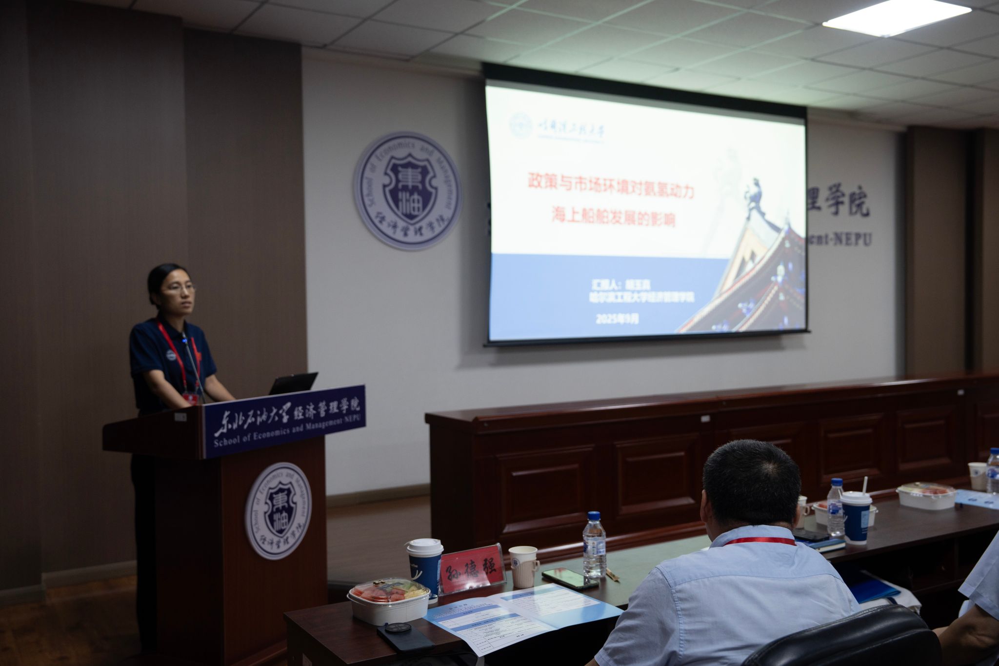 论坛特邀报告环节以“战略引领・能源向新”为主题,多位行业权威专家带来重磅分享。中国石油集团经济技术研究院国家高端智库首席经济学家戴家权,聚焦《特朗普政府能源政策对全球油气供需格局的影响分析》,深入剖析国际能源政策对全球市场的牵动作用;哈尔滨工业大学商公司院长马涛围绕《“十五五”时期人工智能引领消费的趋势与特点》,阐述人工智能技术在消费领域的应用前景及对能源产业的间接影响;中国石油勘探开发研究院高级工程师曲德斌针对《我国油气上游业务形势与提质增效发展战略》,提出推动国内油气上游业务高质量发展的具体路径;中国科公司科技战略咨询研究院先进能源战略与政策研究中心执行主任孙德强解读《先进能源的概念、内涵及发展路径》,为未来能源产业转型指明方向;哈尔滨工程大学英国上市公司365副院长胡玉真则以《氨氢动力海上船舶发展战略研究》为题,探索新能源在海洋经济领域的创新应用。专家们的分享高屋建瓴,为参会者带来能源领域前沿视野,也进一步凸显了主办方搭建高水平学术交流平台的价值。