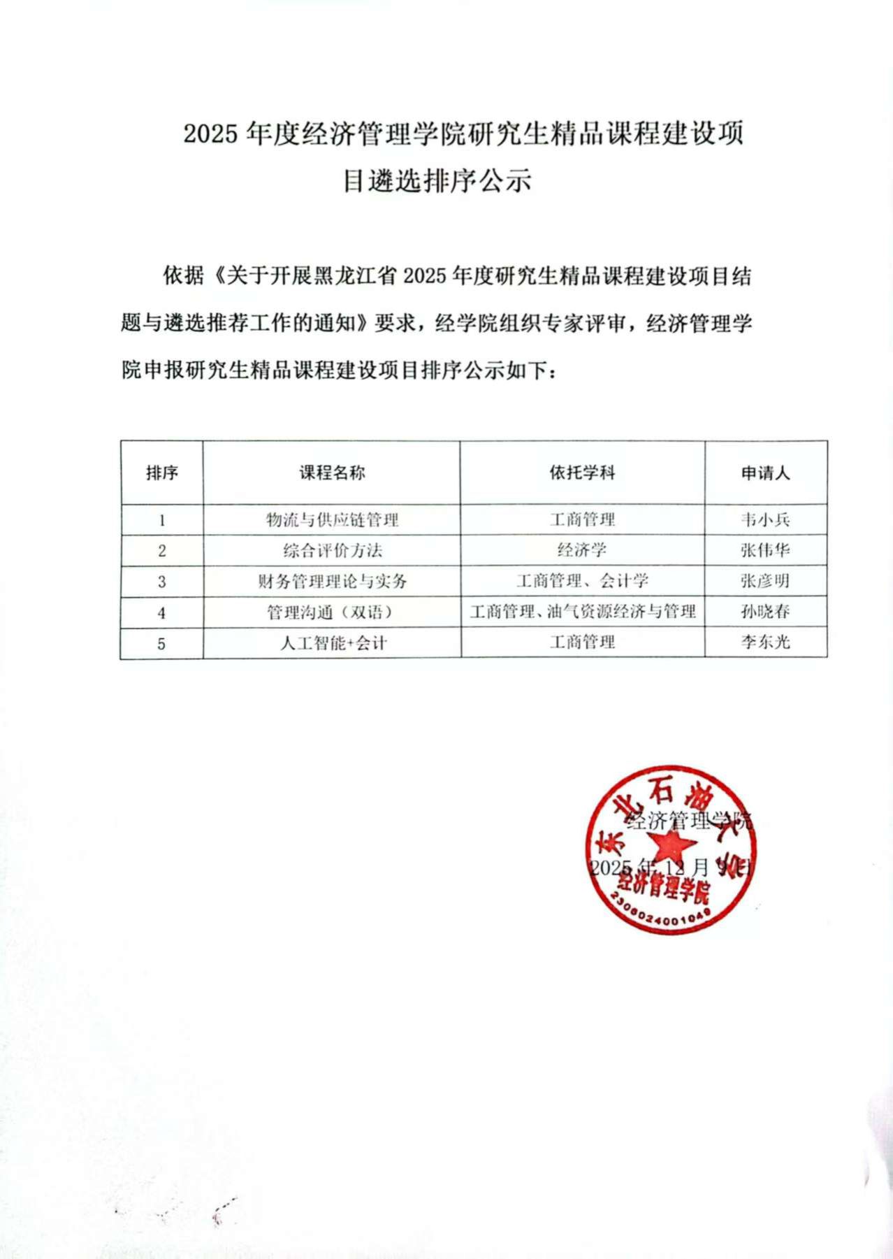 2025年度英国上市公司365研究生精品课程建设项目遴选排序公示