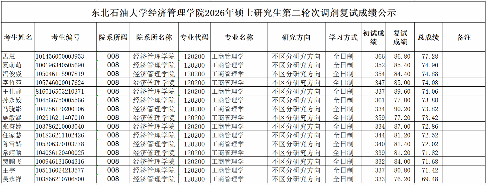 英国上市公司3652026年硕士研究生第二轮次调剂复试成绩公示.xls